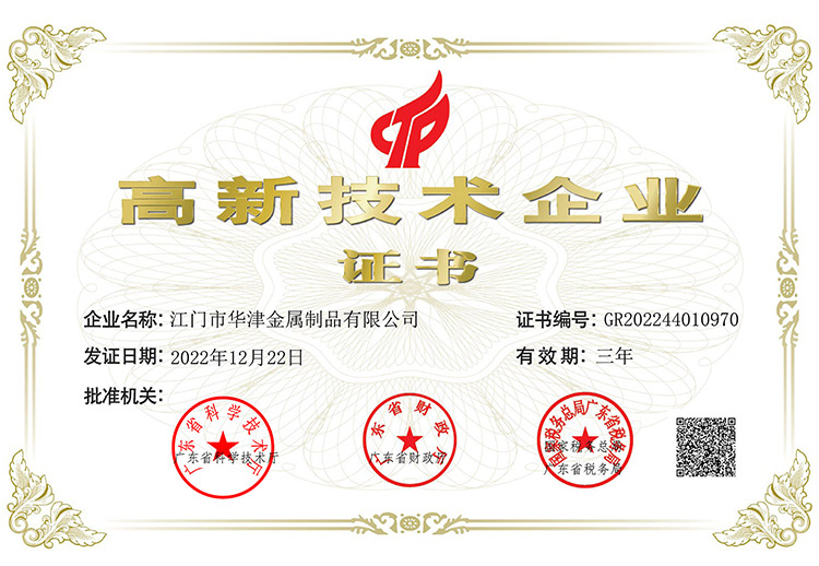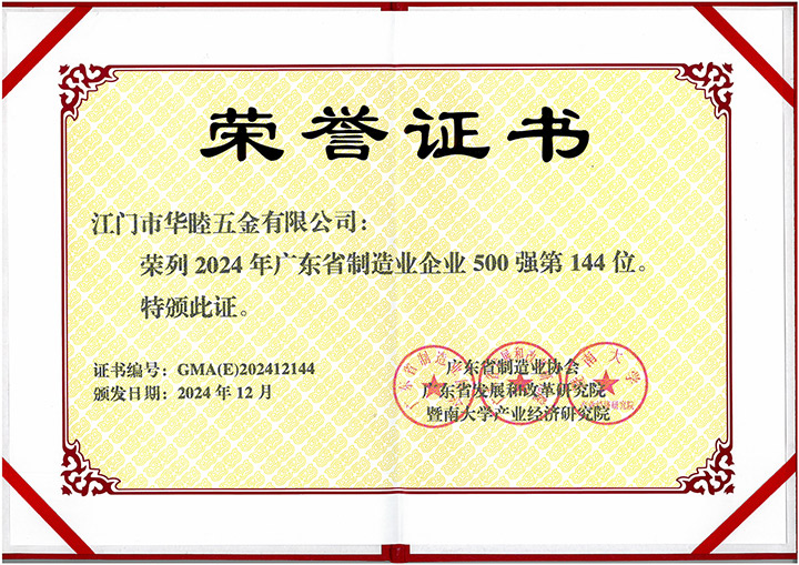 集團(tuán)創(chuàng)建以來,社會(huì)各界對(duì)華津的企業(yè)發(fā)展給予了充分的肯定和高度的評(píng)價(jià)。華津榮列2024年廣東省制造業(yè)企業(yè)500強(qiáng)第102位,華睦榮列2024年廣東省制造業(yè)企業(yè)500強(qiáng)第144位,并且先后榮獲:國家高新技術(shù)企業(yè)、廣東省工程技術(shù)研究中心、廣東省名牌產(chǎn)品、江門市工程技術(shù)研究中心、標(biāo)準(zhǔn)化工作AAA級(jí)企業(yè)、江門企業(yè)百強(qiáng)等稱號(hào)。